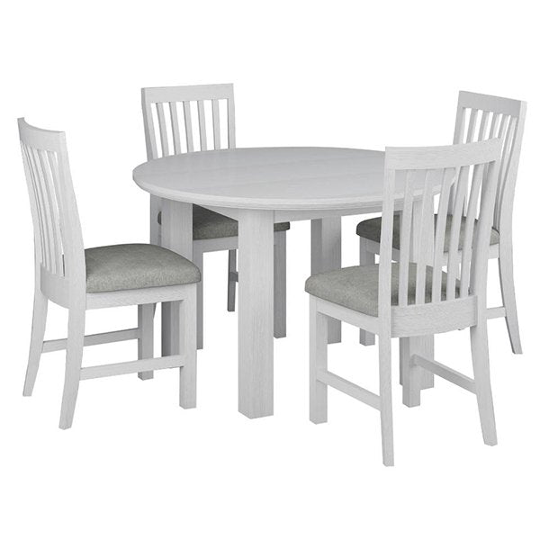 Simple, functional, contemporary coastal design, the Crowther Acacia Wood 5 Piece Round Timber Dining Package is made from acacia timber for strength and durability. The solid construction will support all your dining needs for years to come.