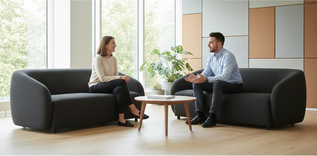 The Kaja Boucle 3 Seater Sofa in Anthracite is a stylish yet comfortable seating option with contemporary curves.