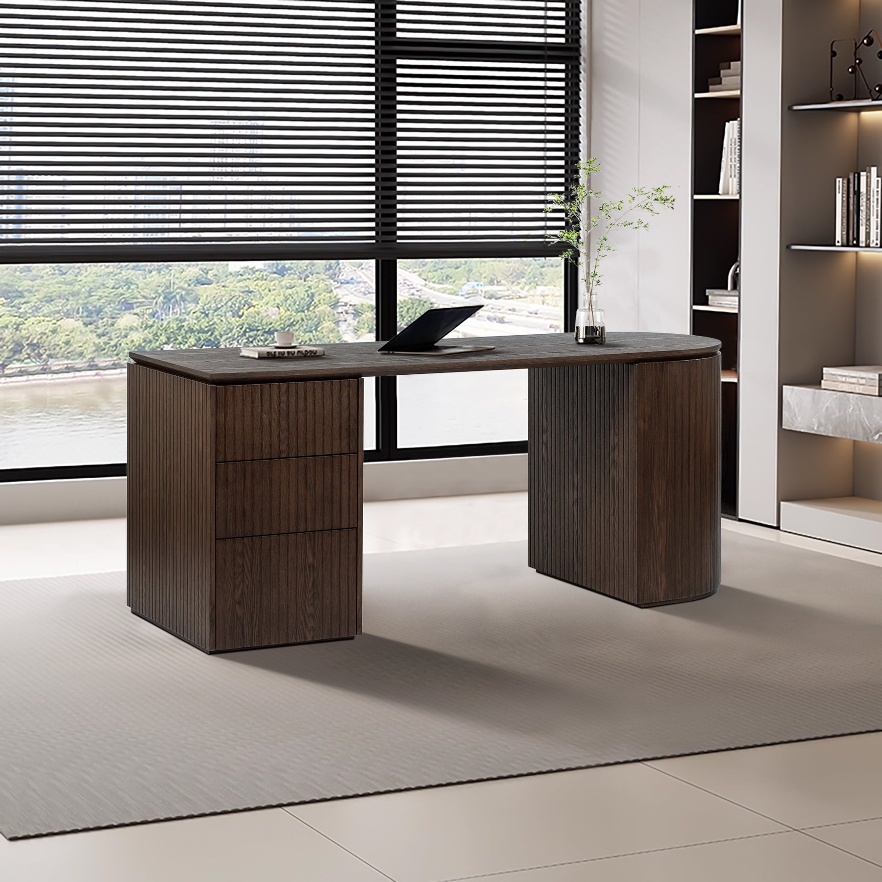 Albina 1.77m Left Drawer Office Desk - Walnut