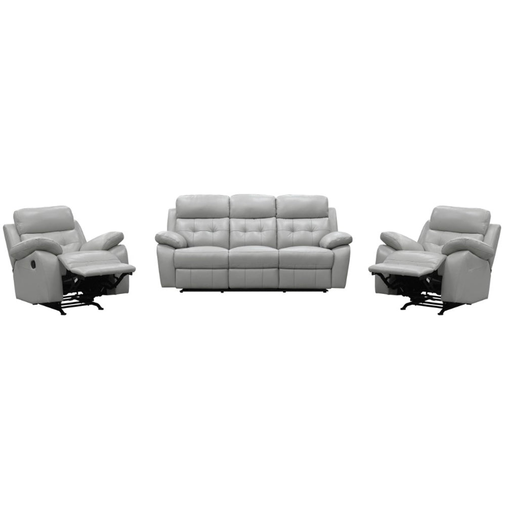 The Aquilla Leather Recliner Sofa Set features plush leather lounge suite with manual recliner action, generous seating, padded armrest and back cushions for neck and lumbar support. Tufting back & stitching details adds to stylish look are also stunning features of the Aquilla.