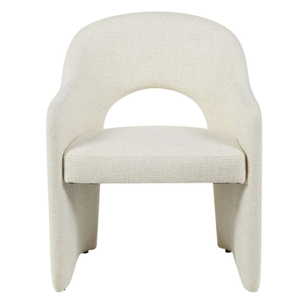 The Bree Dining Chair in Ivory strikes the perfect balance between sculptural design and everyday comfort. Upholstered in soft ivory fabric, its gently curved silhouette and open-back detail lend a light, contemporary feel that suits a range of interior styles. Featuring a timber frame with a generously cushioned seat, it offers both durability and comfort for dining or occasional seating. Arriving fully assembled, the Bree Dining Chair showcases modern elegance and sustainable craftsmanship. Also available in brown upholstered fabric.