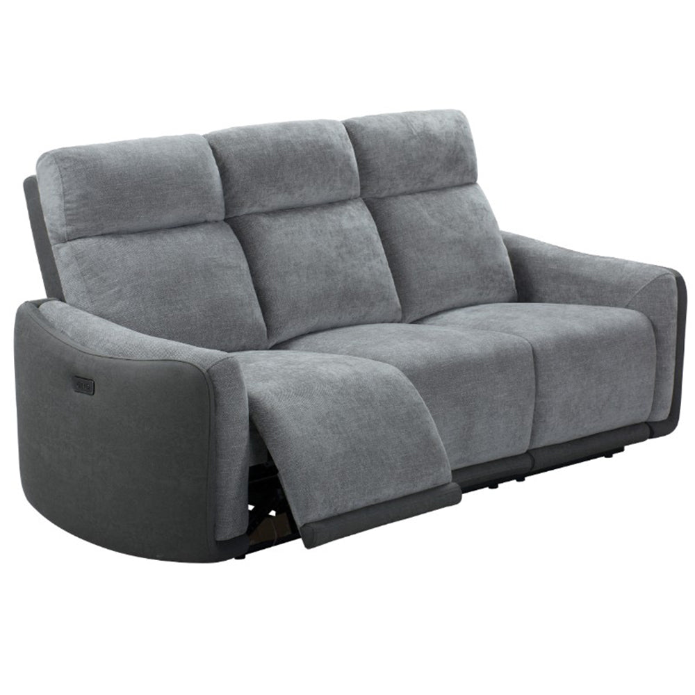 The Canberra 3 Seater Fabric Recliner Sofa features single motor electric recliners with USB chargers.