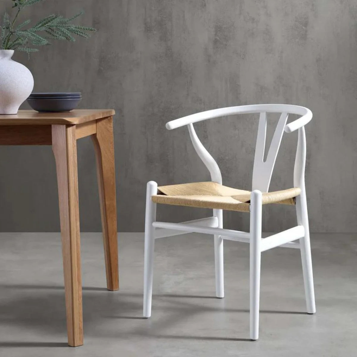 The chair is manufactured by using steam and pressure to bend timber, allowing those stunning curves to be created. The natural rope cord seat is extremely strong and ensures our replica Wishbone Chair is suitable for both commercial and home use.
