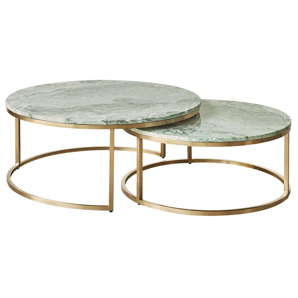 Chloe Dusty Jade Marble Nesting Coffee Table - Gold