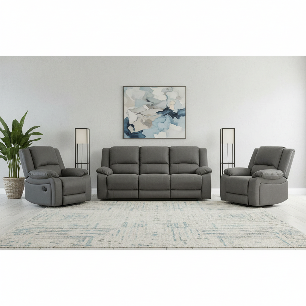 Transform your lounging style with a Cooma Fabric 3+1+1 Recliner Sofa Set and discover high-grade comfort. With its charming nature, infuse your space with its urban chic design and create a modern vibe in the home.