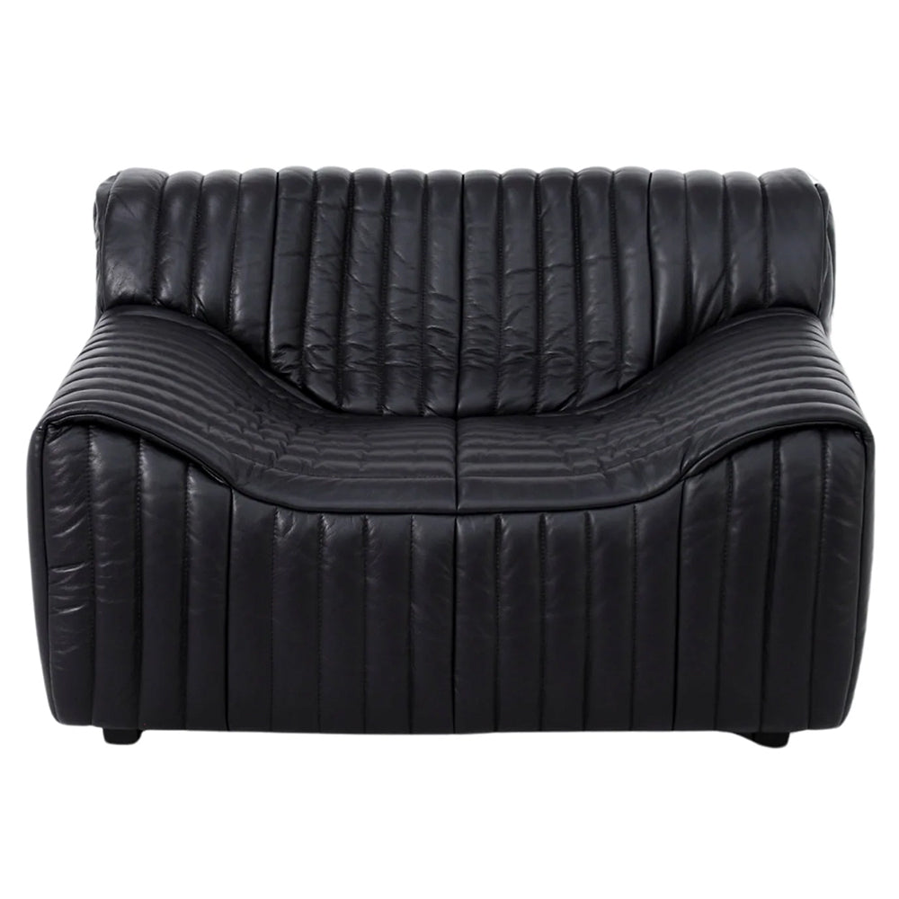 Designed as a focal point for the discerning eye, its inviting silhouette and amber-toned finish radiate effortless sophistication. Meticulously sculpted for both comfort and style, the Duvina Armchair in Black Eco Leather offers a graceful balance of plush support and visual harmony.