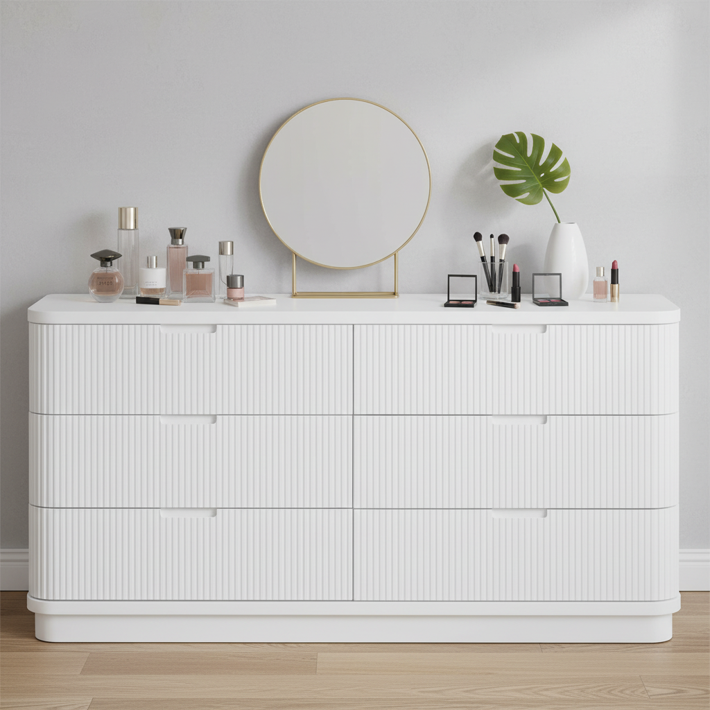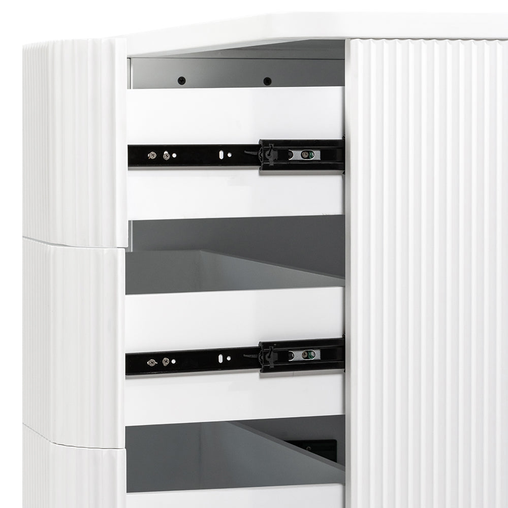 The El Nino Dresser is a stylish and versatile addition to your sleep sanctuary. Featuring a clean complete white design, it adds a touch of tranquillity while providing essential storage space.
