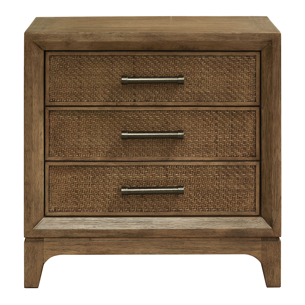 The Eryn Bedside Table is a charming addition that will take pride of place in your bedroom. Crafted from sturdy, sustainably harvested Bayur wood, this bedside table features three medium-sized drawer adorned with a natural rattan batik weave finish on the fascia and handle, offering both style and functionality. The design includes a chamfered inside frame and gently curved legs, enhancing its aesthetic appeal. With its rustic charm and period simplicity, the Eryn Bedside is versatile enough to complement both traditional and contemporary environments. This elegant piece not only provides storage for your essentials but also adds a touch of character to your décor, making it an essential element for any stylish bedroom setting.