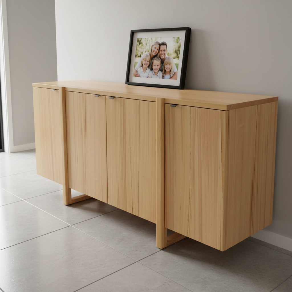 The Eyre 4 Door Buffet features a natural aesthetic with distinct leg design for a contemporary feel.
