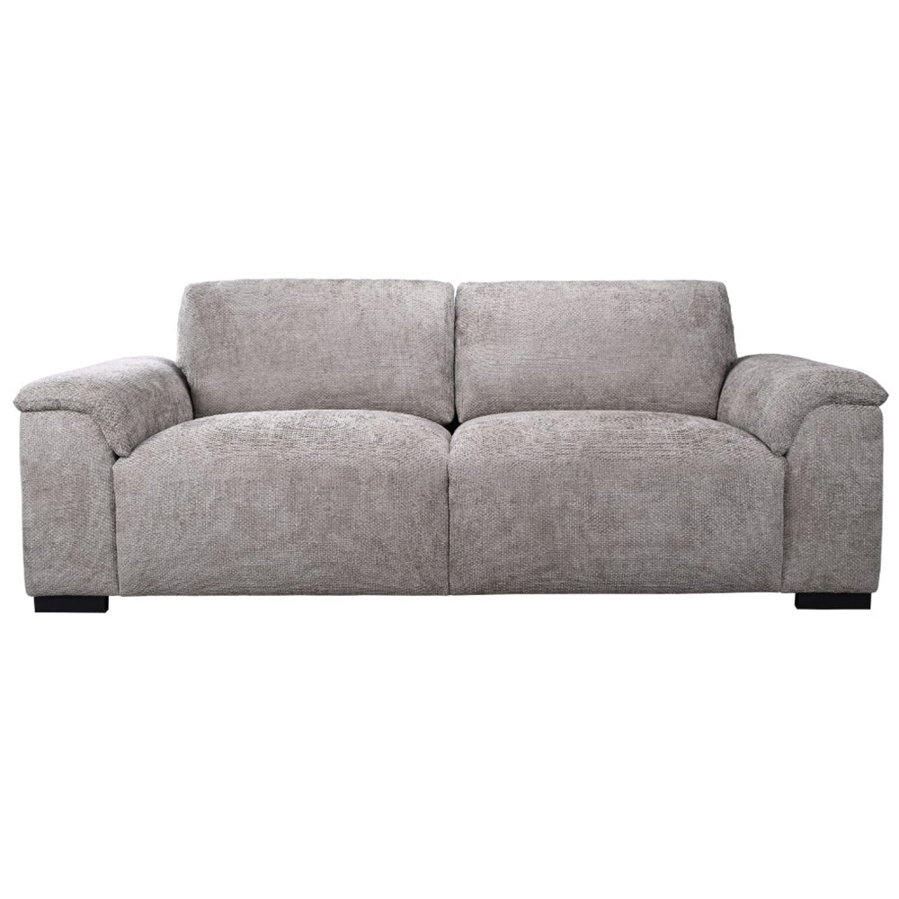 The Guyra 2 Seater Fabric Sofa is a modern sofa featuring wide, low-profile two seat design with fixed seat and loose back cushions. Deep seating and plush curved armrests for added comfort. Sturdy block feet provide a solid, modern foundation.