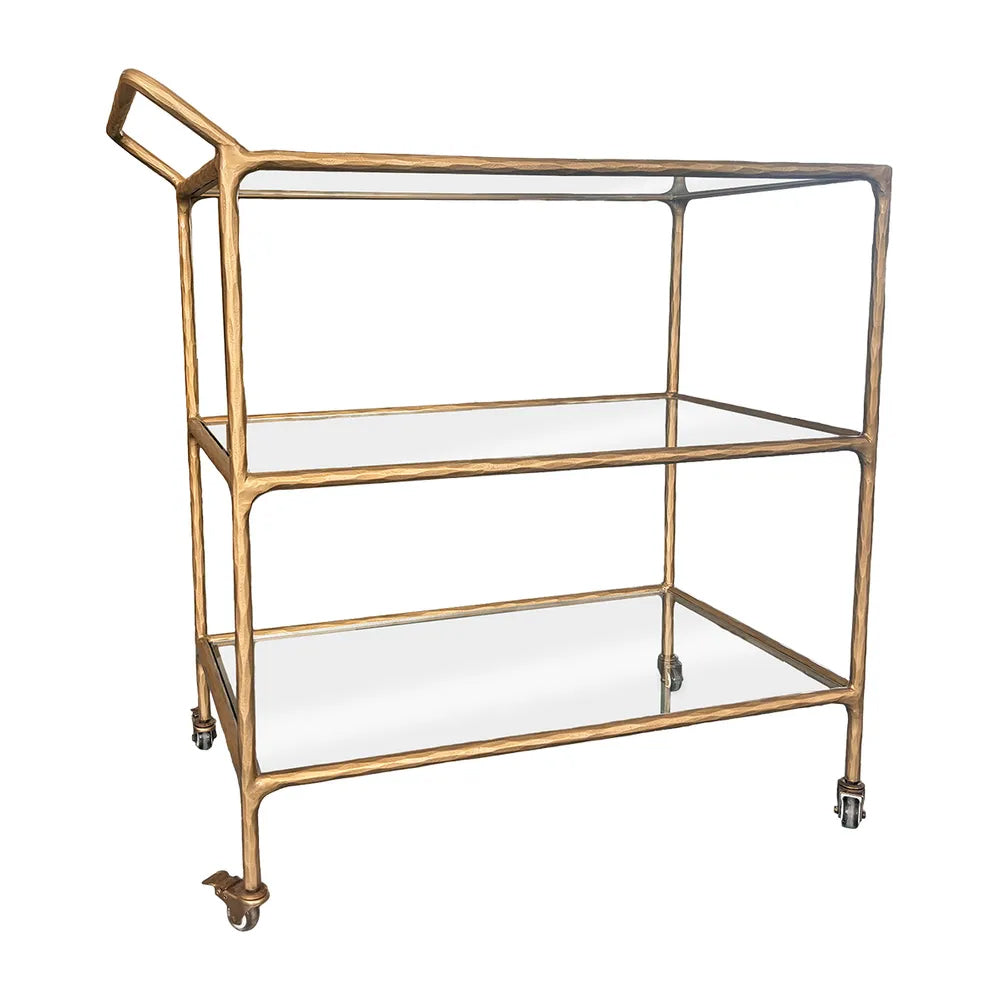 Transform your living space with the Hailey Glass Bar Cart, a breathtaking fusion of style and practicality. Featuring a radiant brass frame and sturdy toughened glass shelves, this bar cart shines with its warm metallic glow and open, inviting design. Equipped with four robust castors and stoppers, it glides effortlessly while offering secure stability for every celebration. Its elegant, linear profile harmonizes beautifully with modern and classic interiors, making it a perfect choice for serving drinks or displaying cherished decor. As a stunning centerpiece in the Hailey range, this bar cart ignites your home with timeless elegance and heartfelt functionality.