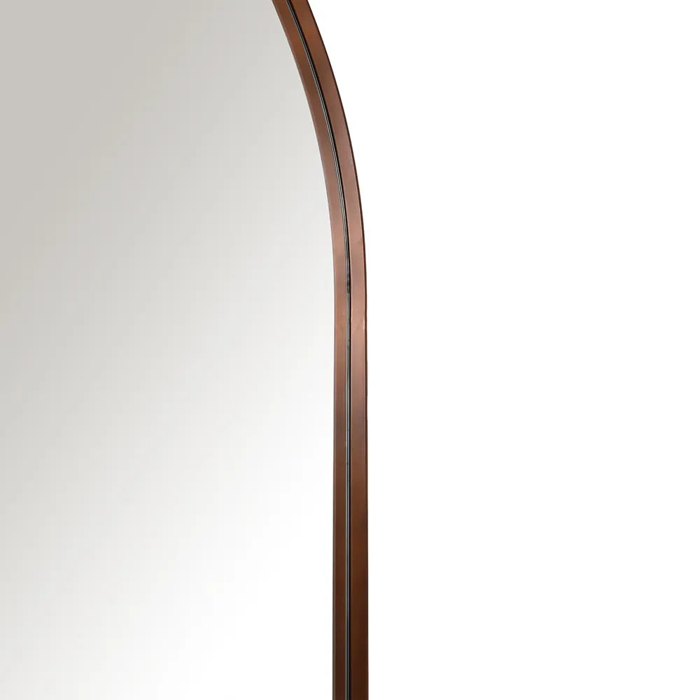 Understated elegance meets timeless design with this arched floor mirror, crafted to bring depth and sophistication to any interior. The electroplated iron frame in an antique brass finish offers a refined, vintage-inspired appeal, complementing both modern and classic spaces. Its flat, clear mirror surface enhances natural light, making rooms feel more open and inviting. A sleek yet striking addition to hallways, bedrooms, or living areas, this mirror seamlessly blends form and function, adding a luxurious statement to curated interiors.
