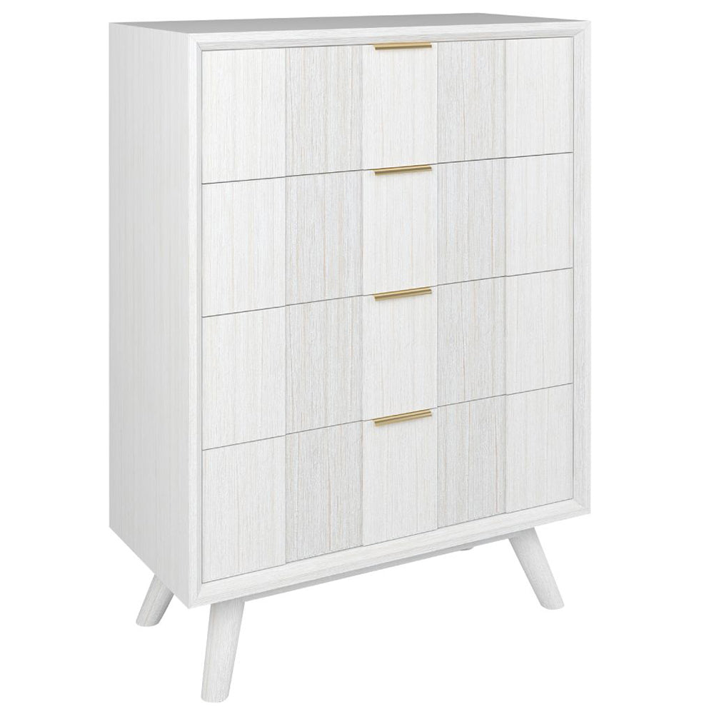Crafted from solid Acacia timber, this tallboy embodies natural beauty and durability, featuring a soft whitewashed finish that highlights the wood's unique grain.