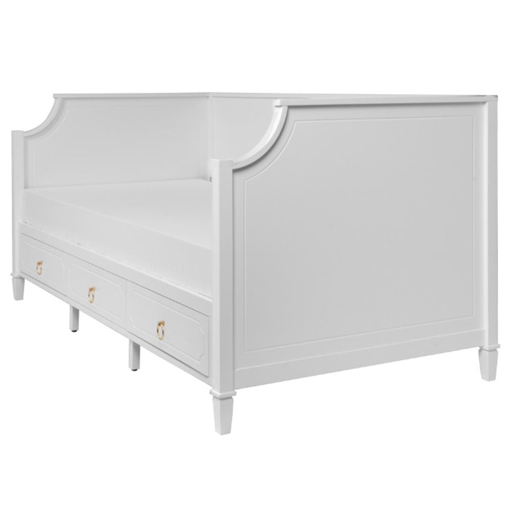 The Mariana 3-Drawer Daybed is crafted from engineered board and painted white, each piece in the Mariana Range offers a practical and peaceful appeal. A lightweight design enables easy transportation and a smooth finish, which forms a sleek base for a crisp white look. Versatile and bright.