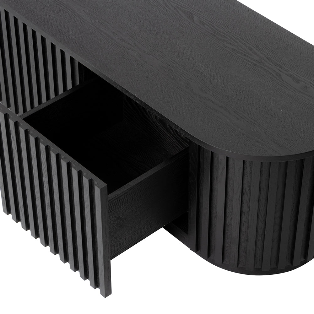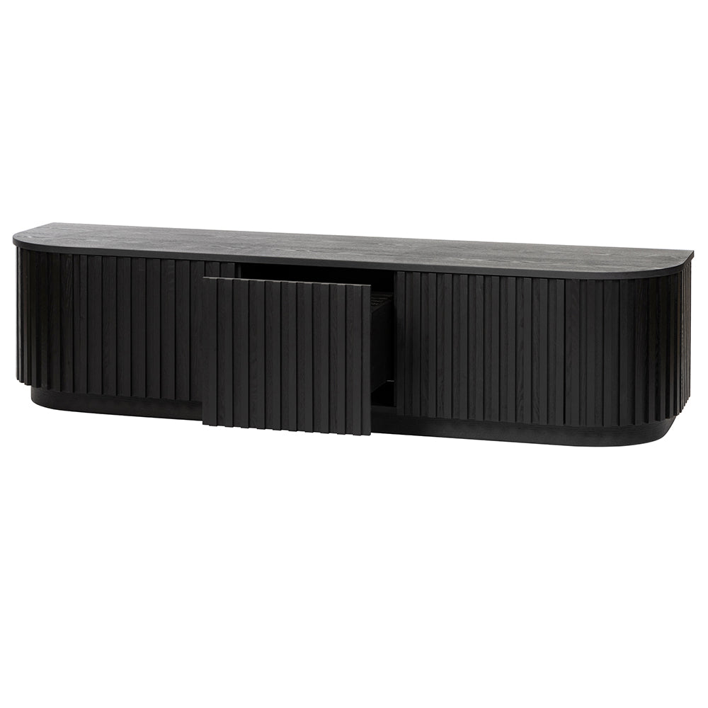 Crafted from engineered wood with a stunning natural black veneer, this entertainment unit exudes a warm and welcoming vibe. But what truly sets it apart is its ability to elevate your living room. The Marty Entertainment Unit isn't just another piece of furniture; it's a style upgrade for your entire space.