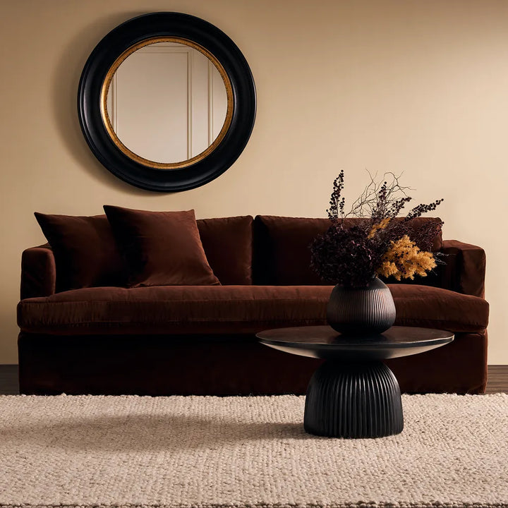 The Maverick 3-Seater Slipcover Sofa now comes in a rich dark brown velvet embracing the trend for all things brown. As noted by key trend forecasters, brown is taking over interiors with its psychological connection to the earth bringing a sense of calm and security. Add to this the love of all things retro, and I guess it was inevitable that our best-selling sofa would join ranks. Featuring a plush velvet upholstered slipcover, our dark chocolate Maverick enjoys the same quality hardwood frame and inner spring construction with soft feather and foam seating.