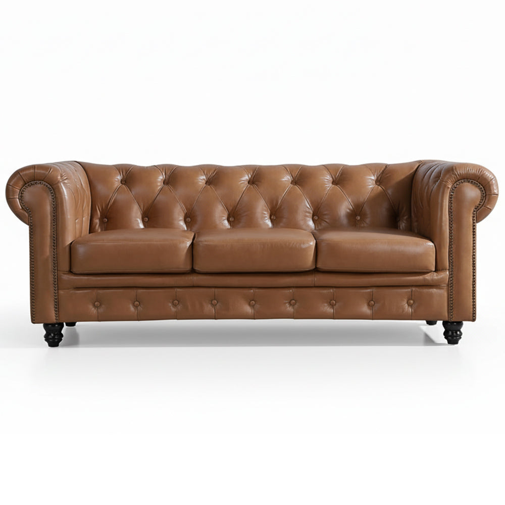 Max Chesterfield 3 Seater Leather Sofa - Cowhide Tan Leather