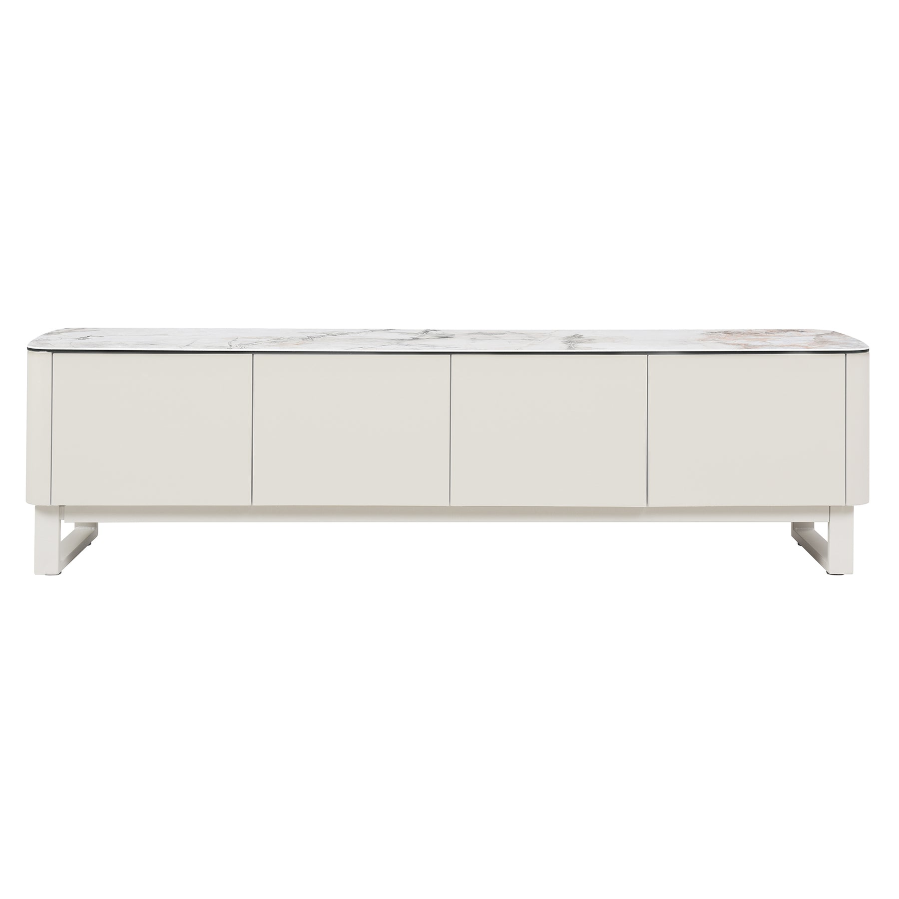 The Milford Ceramic & Glass Lowline TV Unit embodies modern elegance with a refined architectural touch. Each piece is crowned with a matte Milan white marble ceramic top, layered on tempered glass for strength and beauty, and finished to be scratch resistant. The body, crafted in MDF with a matte ivory painted finish, blends seamlessly with the sleek ivory powder-coated metal frame. From statement storage to sophisticated occasional tables, the Milford range brings harmony, durability, and timeless design into any contemporary home.