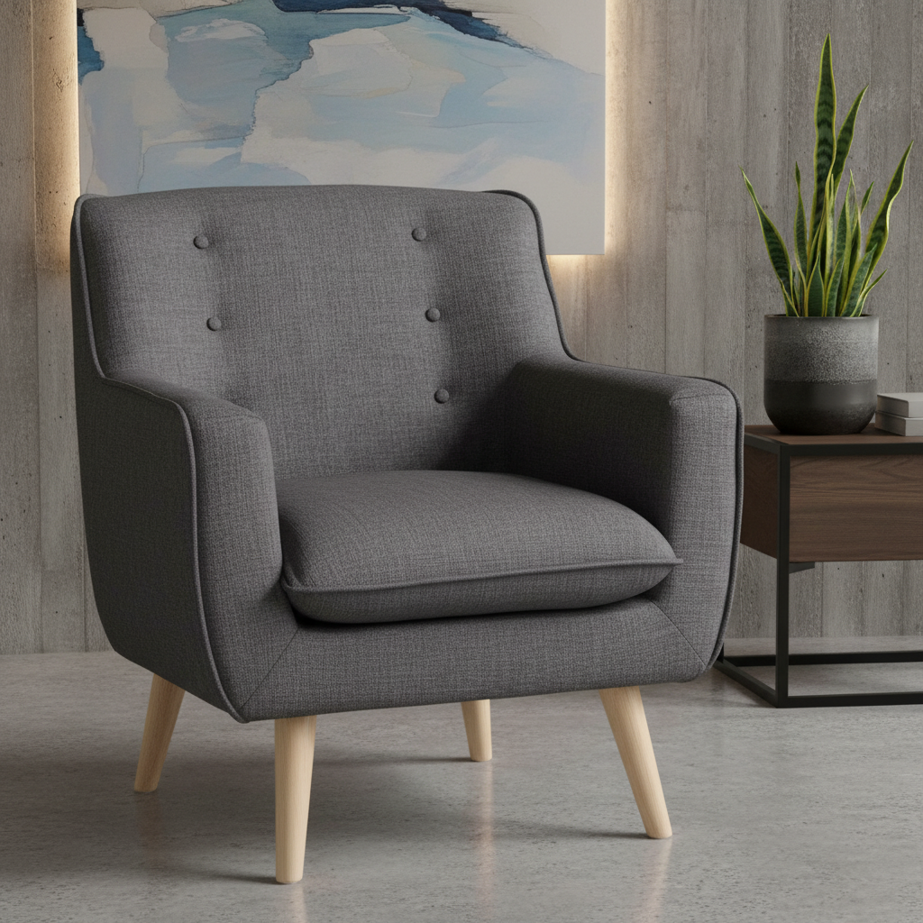 The Josette armchair, with its contemporary design, offers a versatile addition to any room in your home, infusing a dash of elegance and style effortlessly. Constructed with polypropylene fabric upholstery and filled with 90% foam, this armchair ensures maximum comfort. The frame and legs, crafted from New Zealand pine wood, guarantee a solid build that's designed to last. The Josette armchair boasts a standout design with button tufting detail on the backrest and finely piped trims.