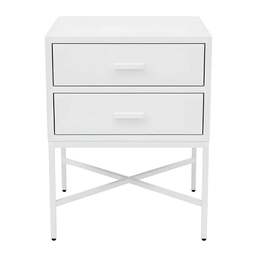 Part of the Nessa Range, the Nessa 2 Drawer Bedside Table offers streamlined storage in a refined, contemporary silhouette. Featuring two spacious drawers with matching satin-finish handles, its clean lines and powder-coated legs create a cohesive, minimalist aesthetic. Designed to complement modern interiors, this compact piece balances everyday functionality with timeless simplicity. Available in All White and All Black finishes to suit a wide range of bedroom styles.