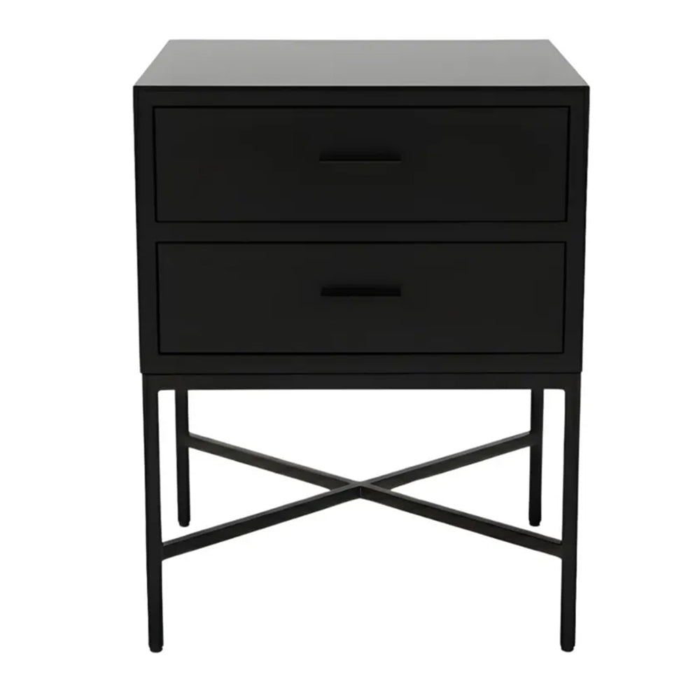 Part of the Nessa Range, the Nessa 2 Drawer Bedside Table offers streamlined storage in a refined, contemporary silhouette. Featuring two spacious drawers with matching satin-finish handles, its clean lines and powder-coated legs create a cohesive, minimalist aesthetic. Designed to complement modern interiors, this compact piece balances everyday functionality with timeless simplicity. Available in All White and All Black finishes to suit a wide range of bedroom styles.