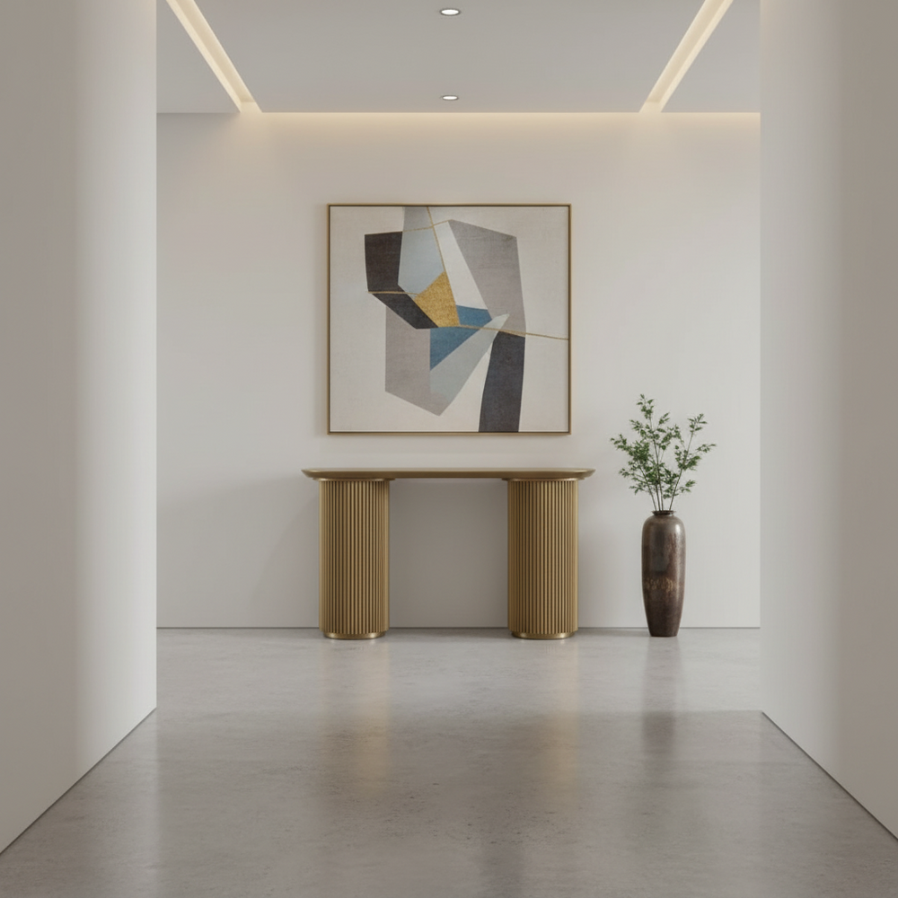 The Nomad Console Table makes a striking architectural statement with its sculptural fluted pedestal bases and refined oval silhouette. Designed to elevate modern interiors, it works beautifully in entryways, living rooms or behind sofas as a display surface for lighting, books and decorative objects. Available in large and small sizes, the Nomad Console Table offers versatility across both spacious and compact settings. Finished in black, antique gold or white paint, it blends contemporary elegance with timeless design appeal.