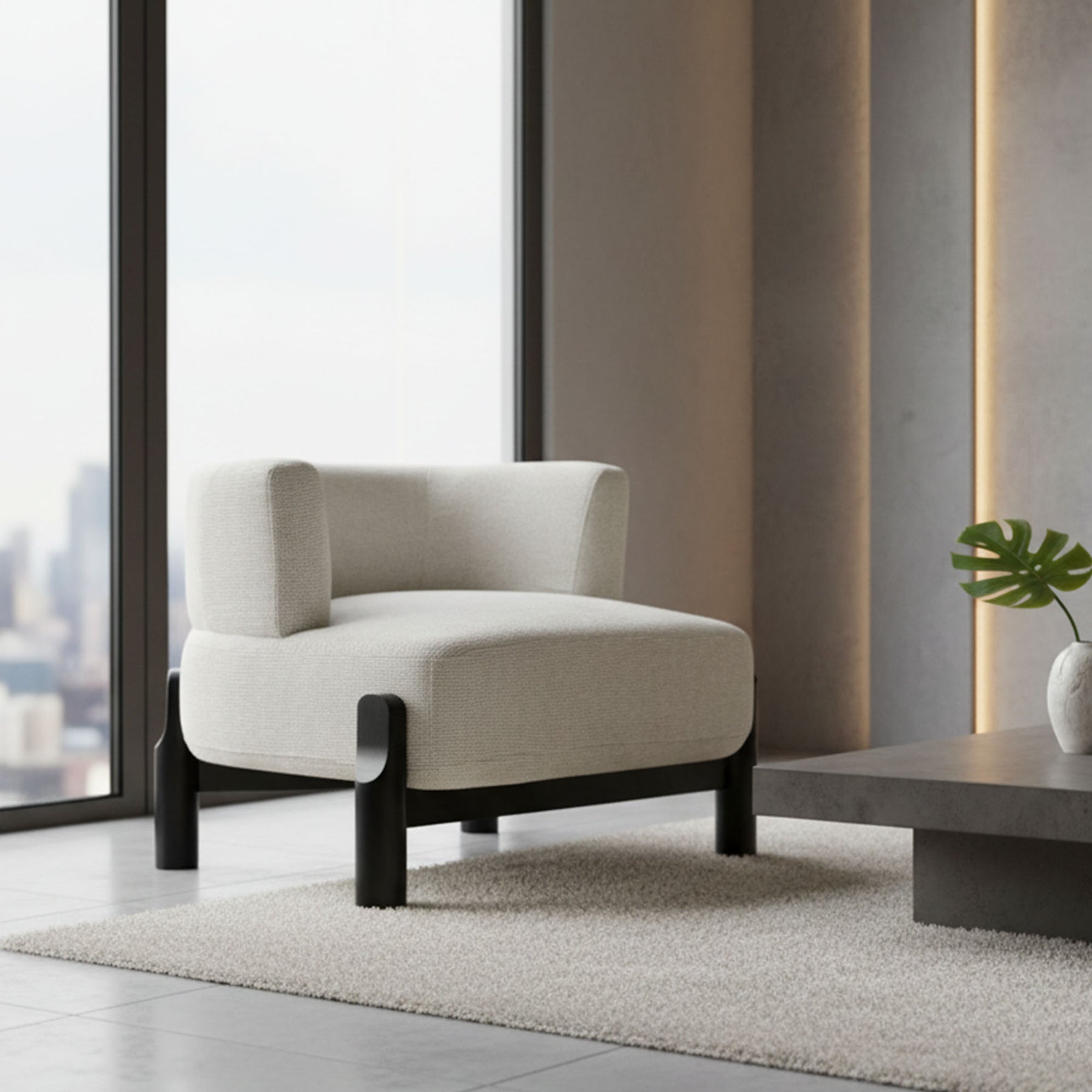 The Richmond Chair in white chenille is a statement in refined simplicity. Its curved lines and softly textured upholstery create a serene and inviting form. Set on black timber legs, this chair offers contrast and balance while complementing both modern and classic interiors. Whether styled as a feature in a lounge or paired in a bedroom suite, the white Richmond Chair elevates any space with its timeless elegance and tactile comfort.