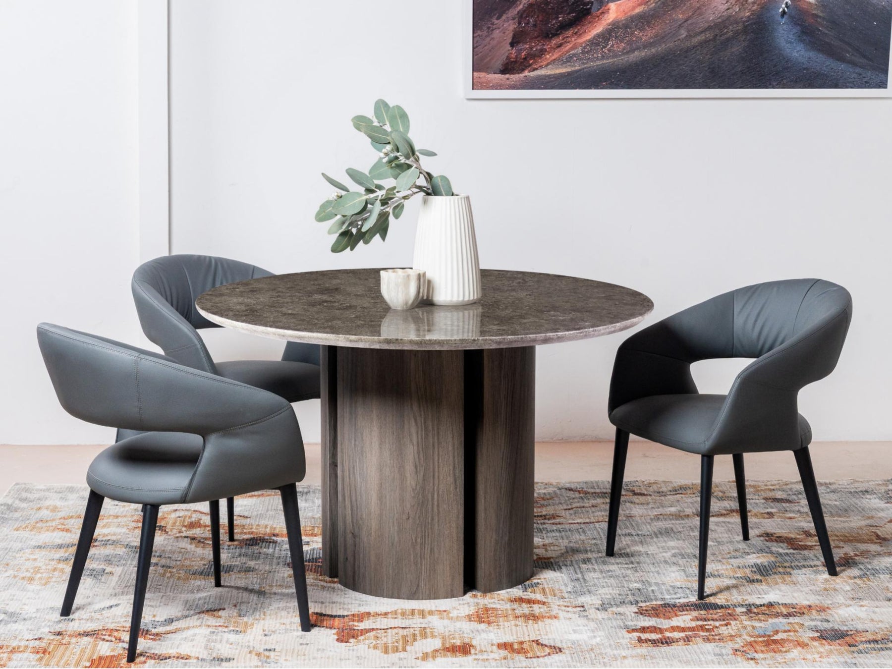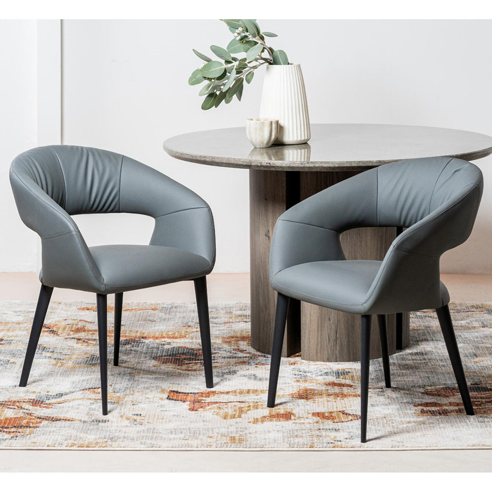 The Soho Dining Chair effortlessly blends urban sophistication with sustainable style. Featuring a sleek charcoal and beige eco leather upholstery, it offers a modern, eco-conscious alternative without compromising on luxury. The sturdy black powder-coated metal frame adds industrial edge and durability, making this chair a perfect fit for contemporary dining spaces. Designed for both comfort and style, the Soho chair is an elegant statement piece that complements any modern interior.