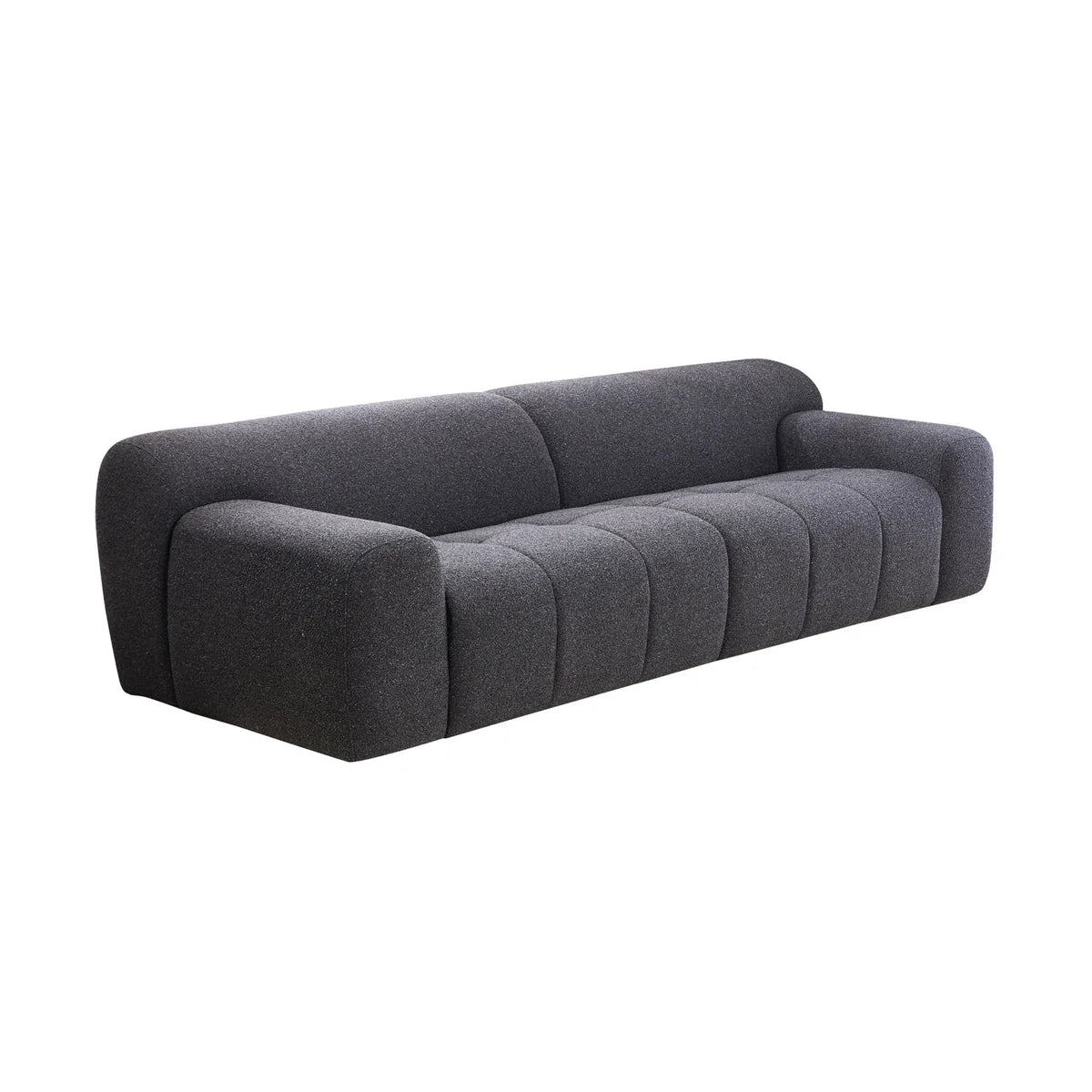The Soma 3 Seater Fabric Sofa is a modern sofa featuring wide, low-profile two seat design with fixed seat and comfortable back cushions. Deep seating and plush curved armrests for added comfort.