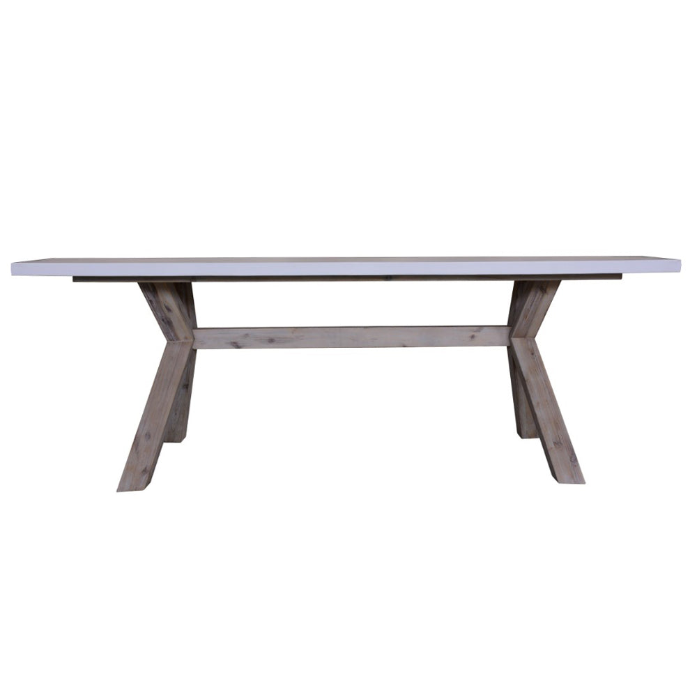 The Tacoma Dining Table features a concrete top flaunting modern look, while Acacia timber base in sandblasted finish enhances the rustic appeal.