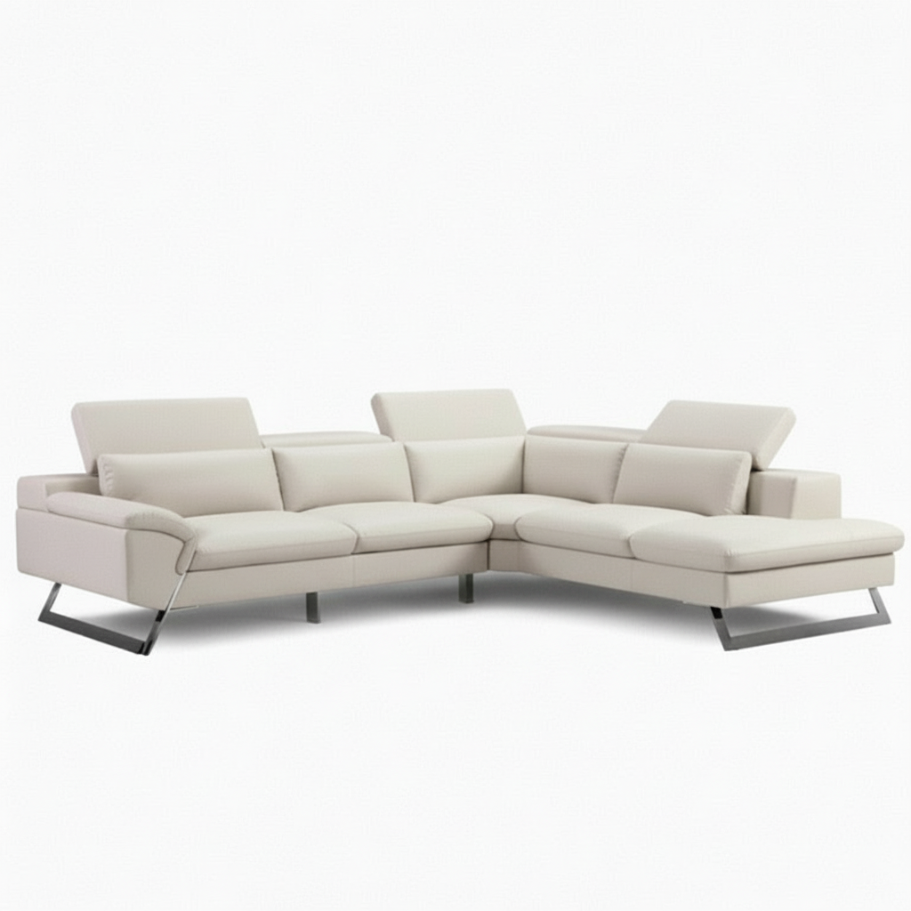 The Tranquil Chaise Corner Sofa radiates elegance with its beautiful appearance. Its modern, stylish structure can elevate the aesthetic of any space, while its white colour upholstery creates a soothing vibe around it.