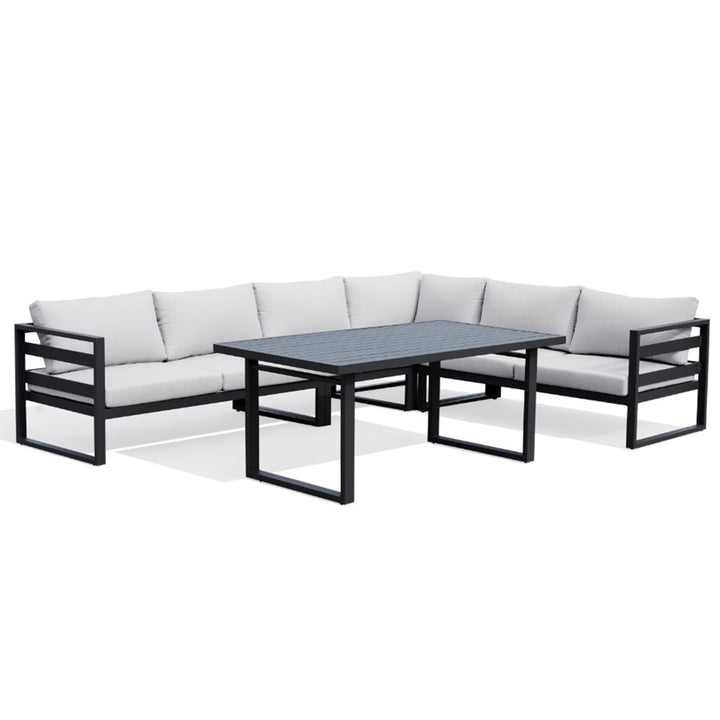 Whitsundays 5 Piece Outdoor Corner Lounge + Dining Set - Anthracite + Neutral Grey