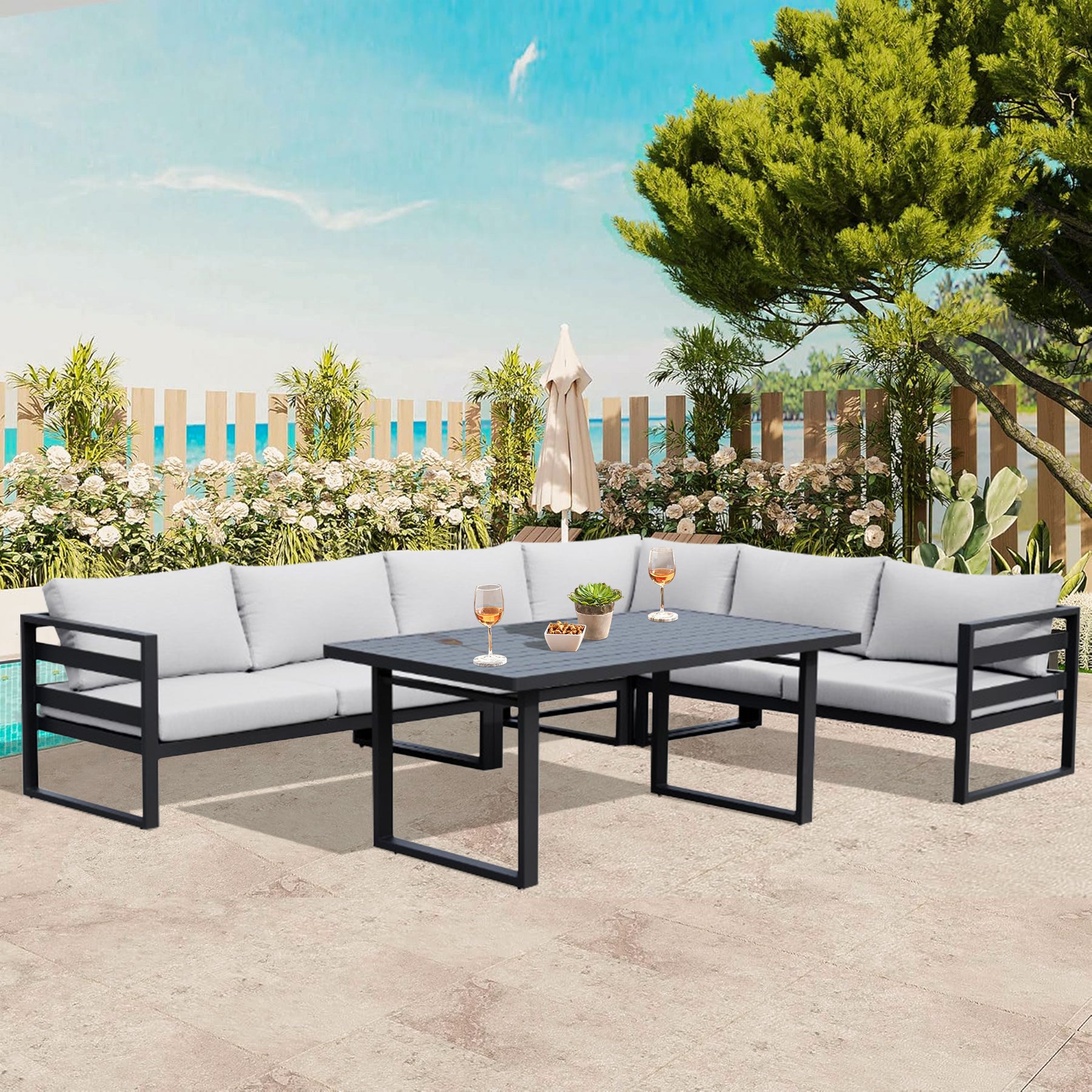The Whitsundays 5 Piece Outdoor Corner Lounge + Dining Set is Low maintenance and long-lasting construction.