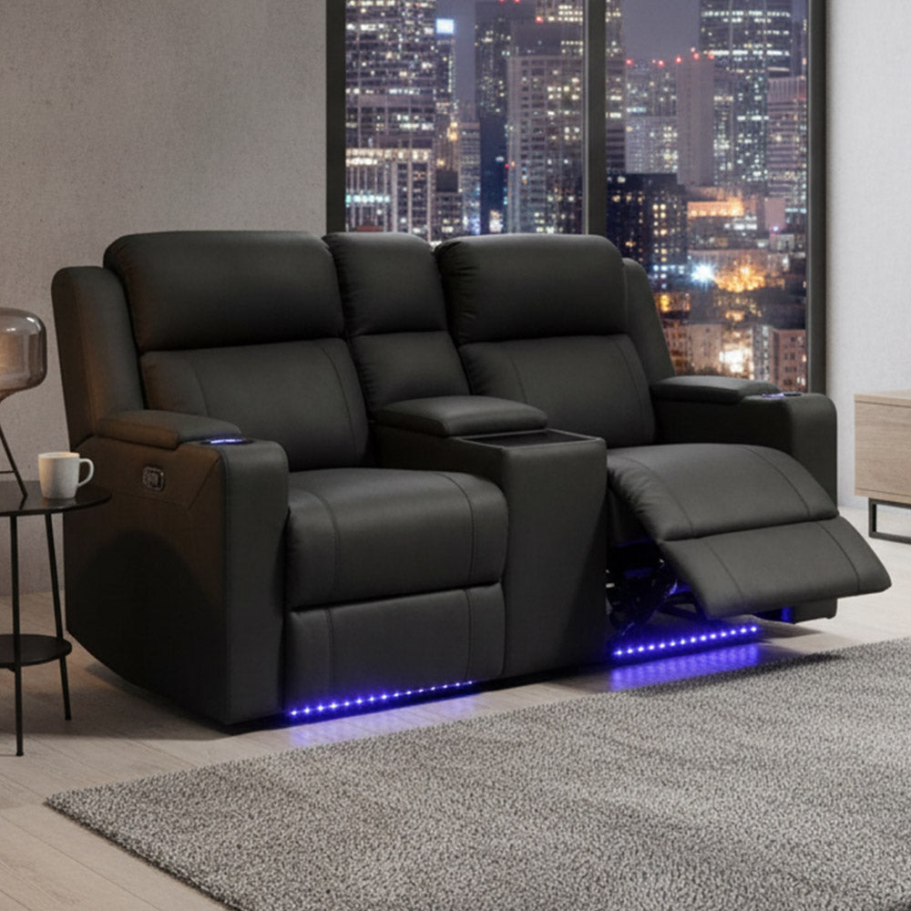 The Wolgan 2-Seater Upholstered Recliner Sofa features a smart cupholder which includes buttons for headrest up/down, rec open/close, base & cupholder light, USB charger. Dual motor for independent function of head rest and recliner plus base light adds to the media room atmosphere.