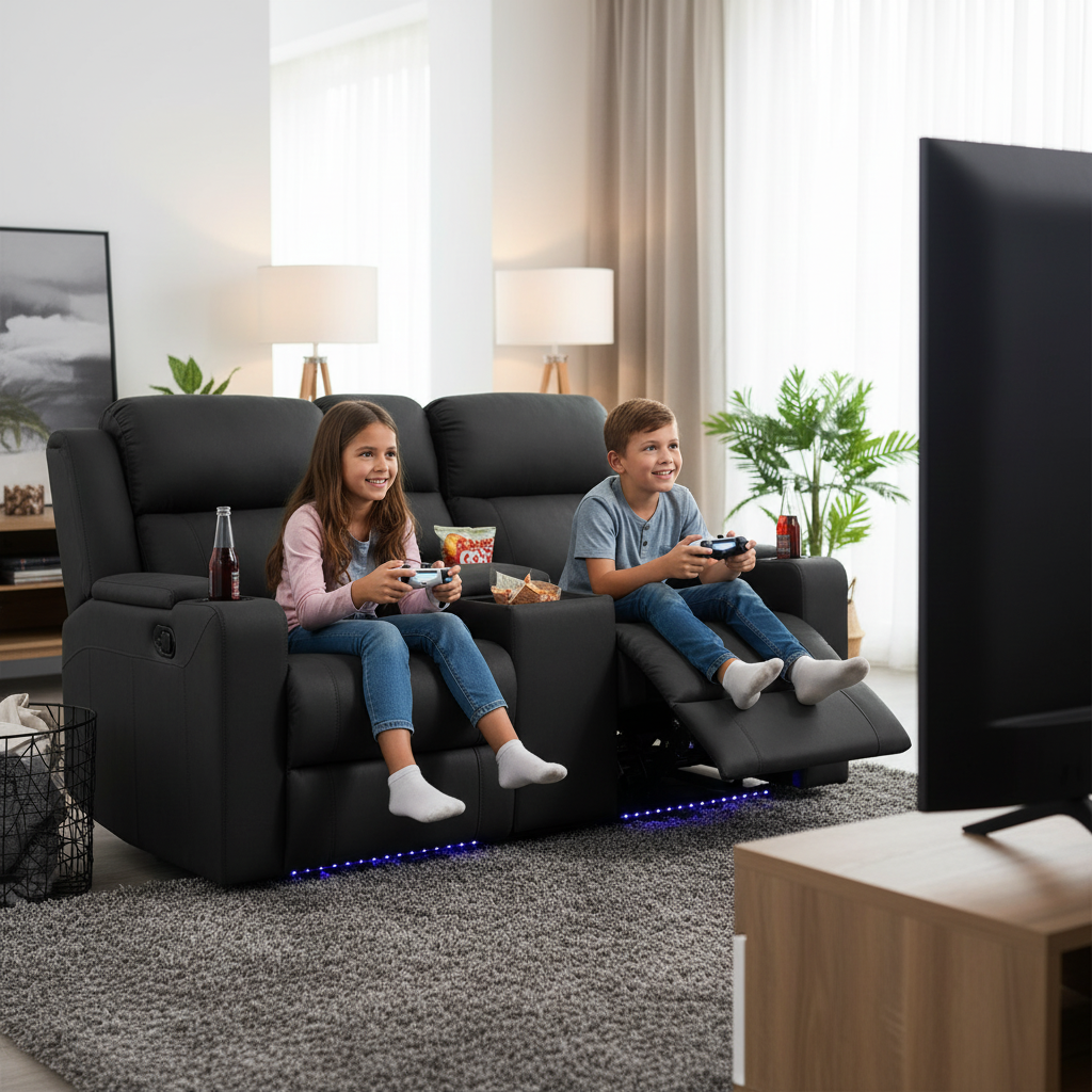 Wolgan 2 Seater Upholstered Recliner Sofa - Black